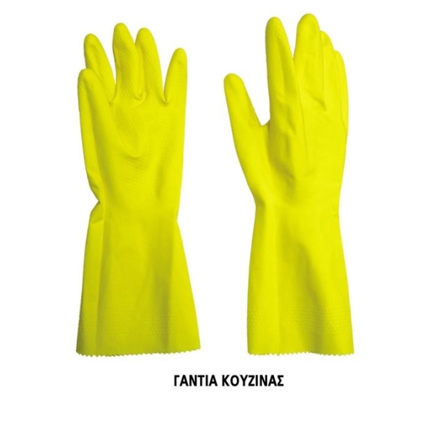 Γάντια οικιακής χρήσης από φυσικό λάτεξ με επένδυση. Αποφυγή επαφής με γράσσο και παράγωγα υδρογονανθράκων. Μεγέθη S, M (7-7,5), L